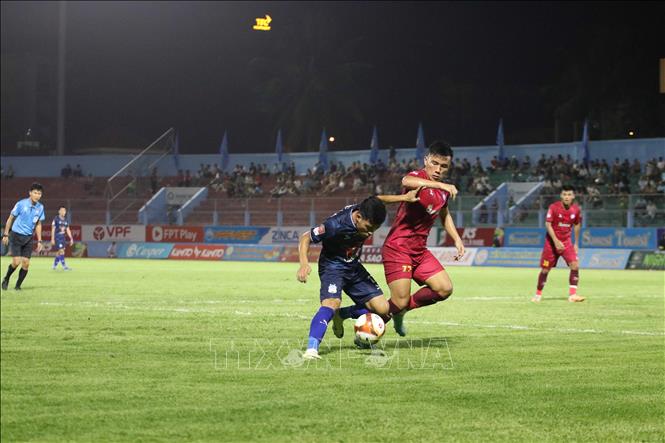 Ông Mai Đức Chung- Phó Chủ tịch Hội đồng HLV QG, HLV trưởng ĐTQG và bà Ngô Thị Xuân Ngọc – đại diện Công ty Cổ phần Acecook Việt Nam trao giải thưởng cầu thủ xuất sắc nhất giải cho cầu thủ Lưu Hoàng Vân (9, Phong Phú Hà Nam)