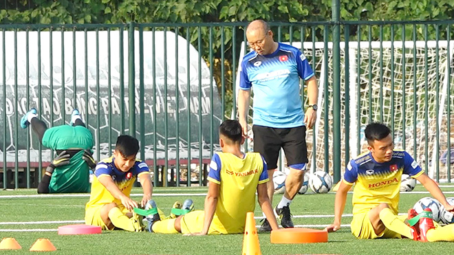 HLV Park Hang-seo cho thực hiện các bài tập rà soát mức độ tương thích của các vị trí trên sân. Ảnh: VFF.Trận đấu giữa đội tuyển Việt Nam và đội tuyển Oman trong khuôn khổ vòng loại thứ ba FIFA World Cup 2022 sẽ diễn ra vào 19 giờ ngày 24/3 tới trên sân vận động quốc gia Mỹ Đình. Ở lượt đi trên SVĐ Sultan Qaboos, thầy trò HLV Park Hang-seo đã thua 1 - 3 sau khi có bàn dẫn trước do công Tiến Linh.Với lợi thế từ sự tiếp lửa của khán giả nhà, đội tuyển Việt Nam đặt quyết tâm sẽ đánh bại đối thủ đến từ Tây Á, trước khi hành quân sang Nhật Bản thi đấu trận cuối cùng với đội tuyển của nước chủ nhà.
